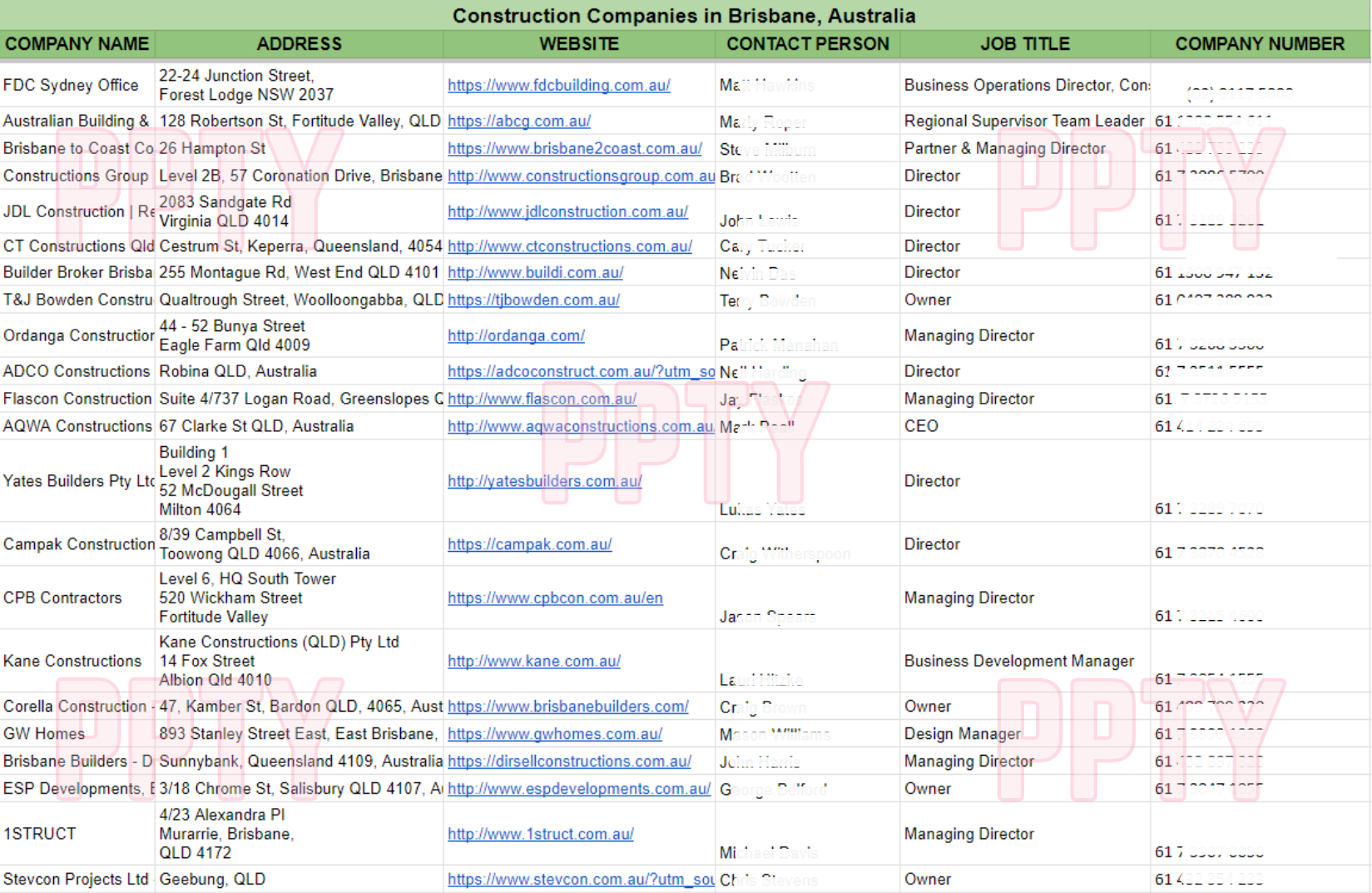 Sample Request: A client would like to find construction companies based in Brisbane, Australia.