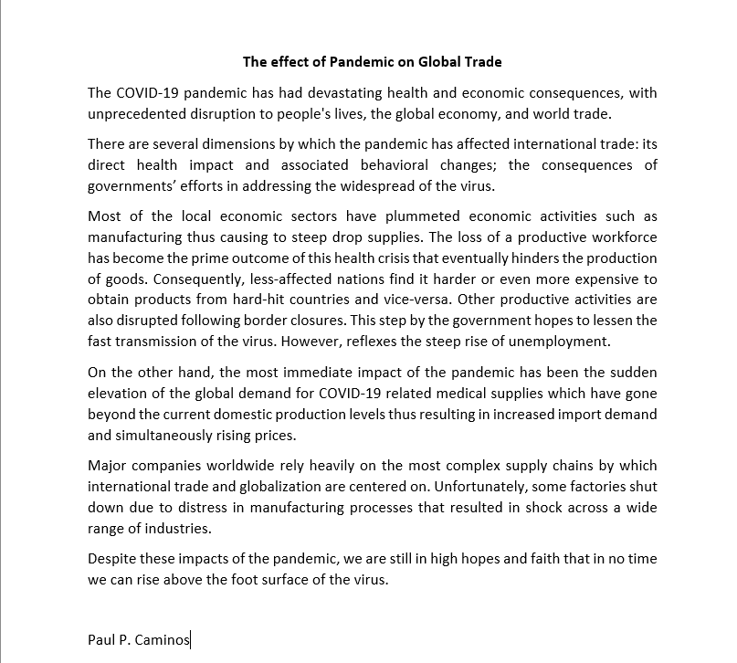 Effect of Pandemic on Global Trade