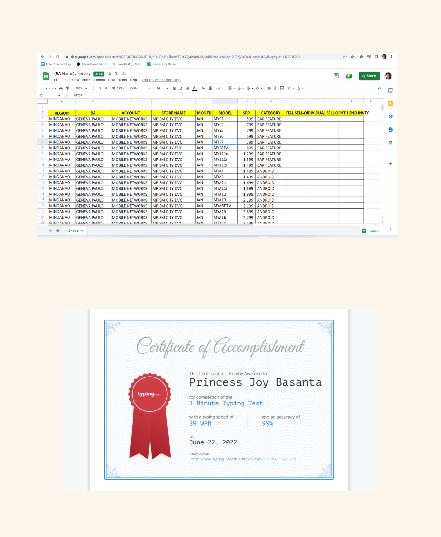 SAMPLE AND CERTIFICATE