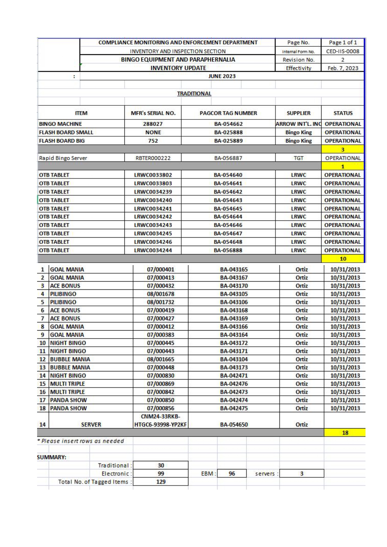 INVENTORY LISTING
