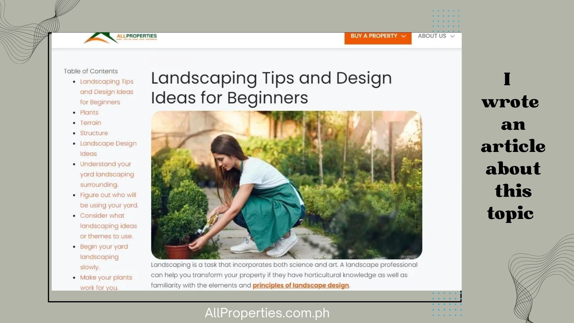 I wrote an article for the topic "The Basics and Benefits of Landscaping" for the PINOYBUILDER website.