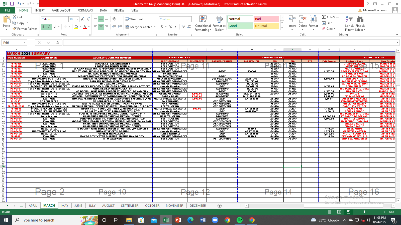 Data Entry Sample Work