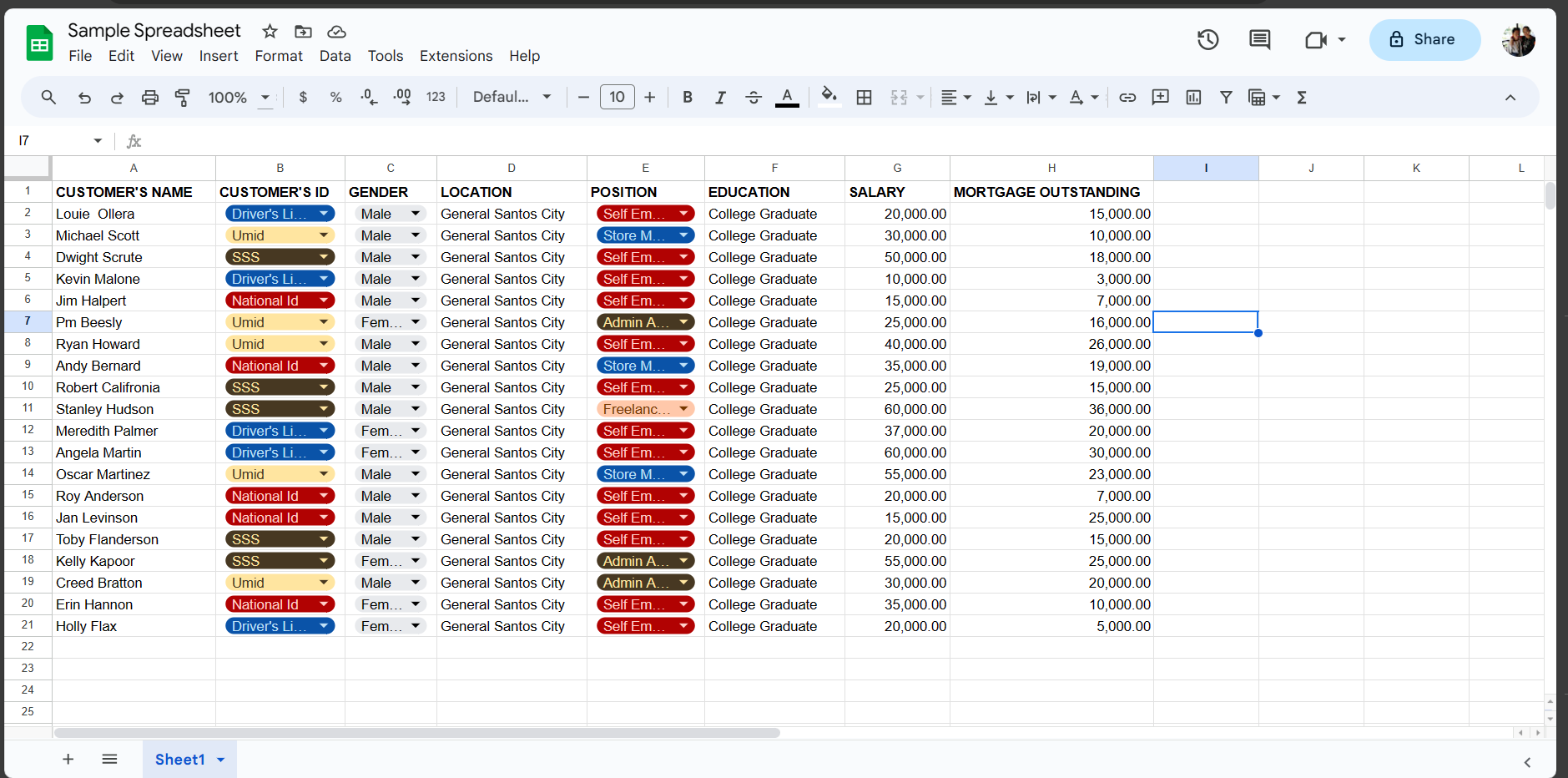 Spreadsheet Sample