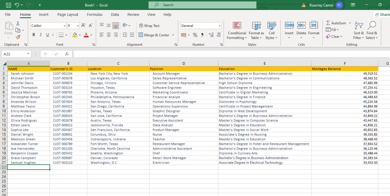 Customer's Mortgage Balance
