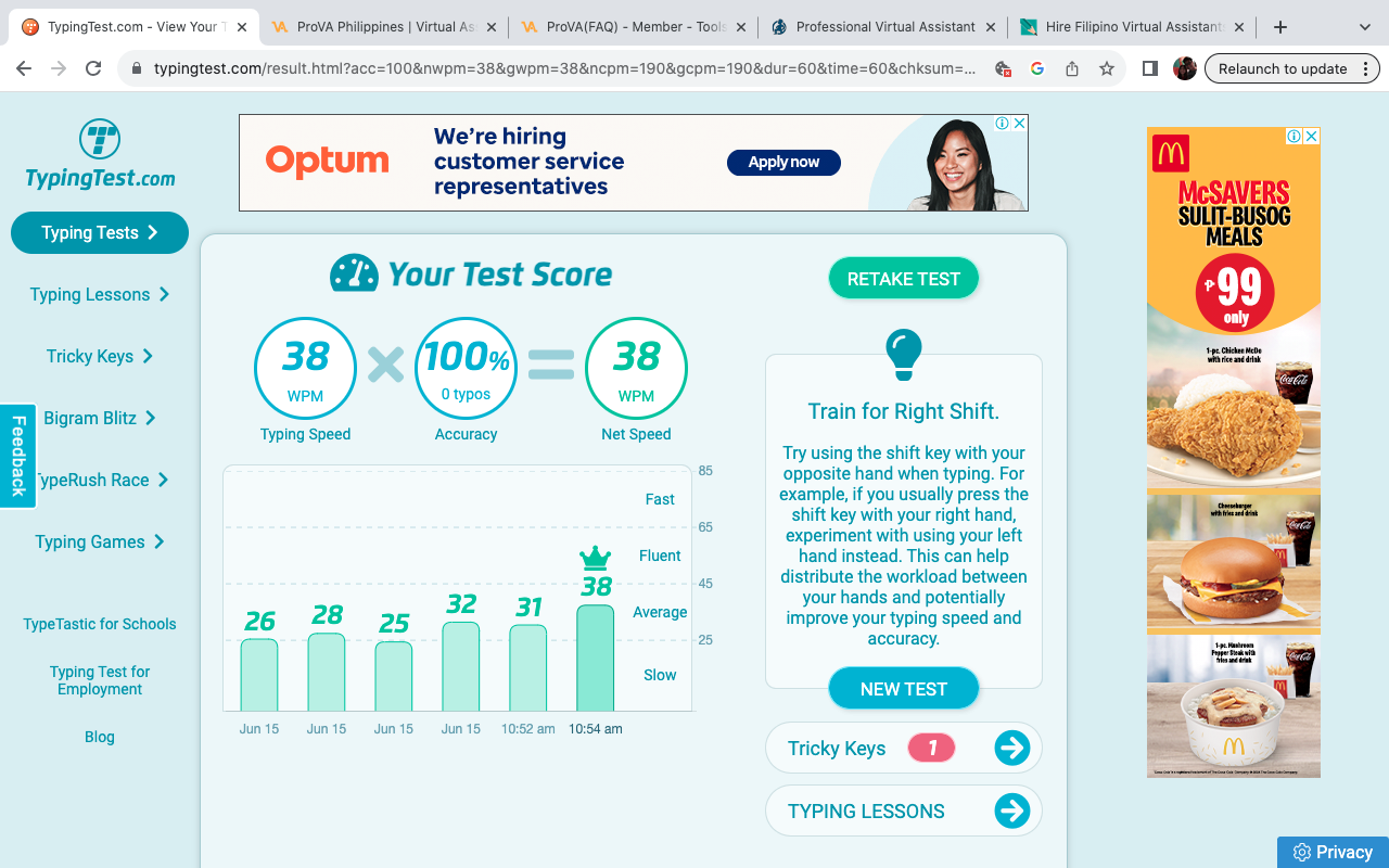 Typing Test Result