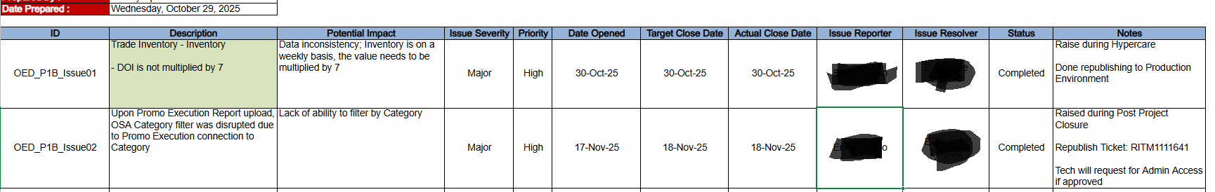 Issue Log Document