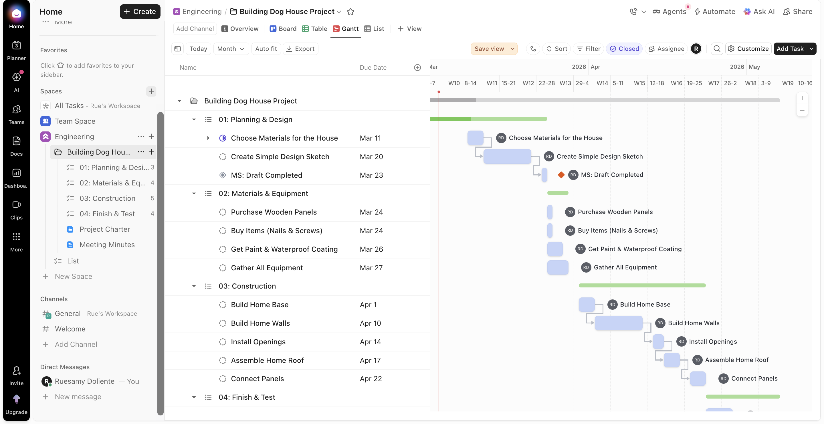 - Organize projects into manageable phases