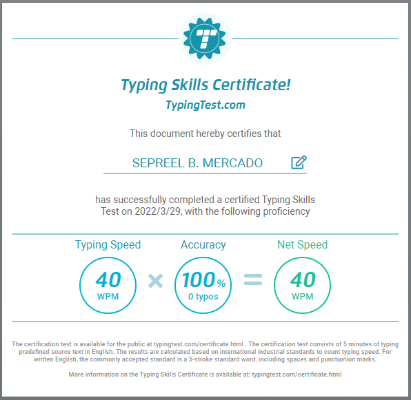 TYPING TEST CERTIFICATE