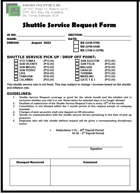 Shuttle Service Survey Form