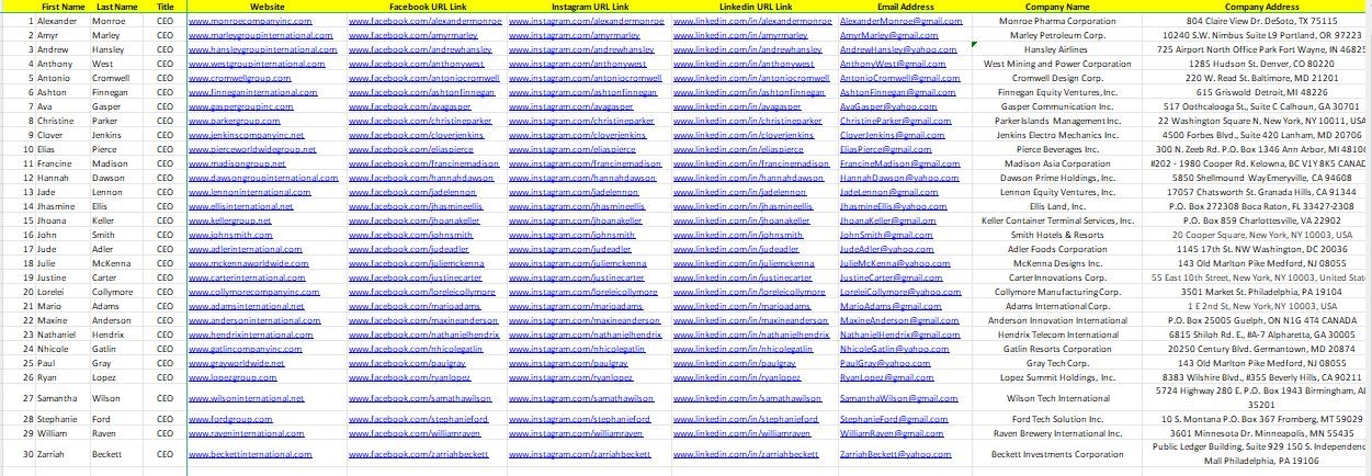 List of CEO with domains and URLs