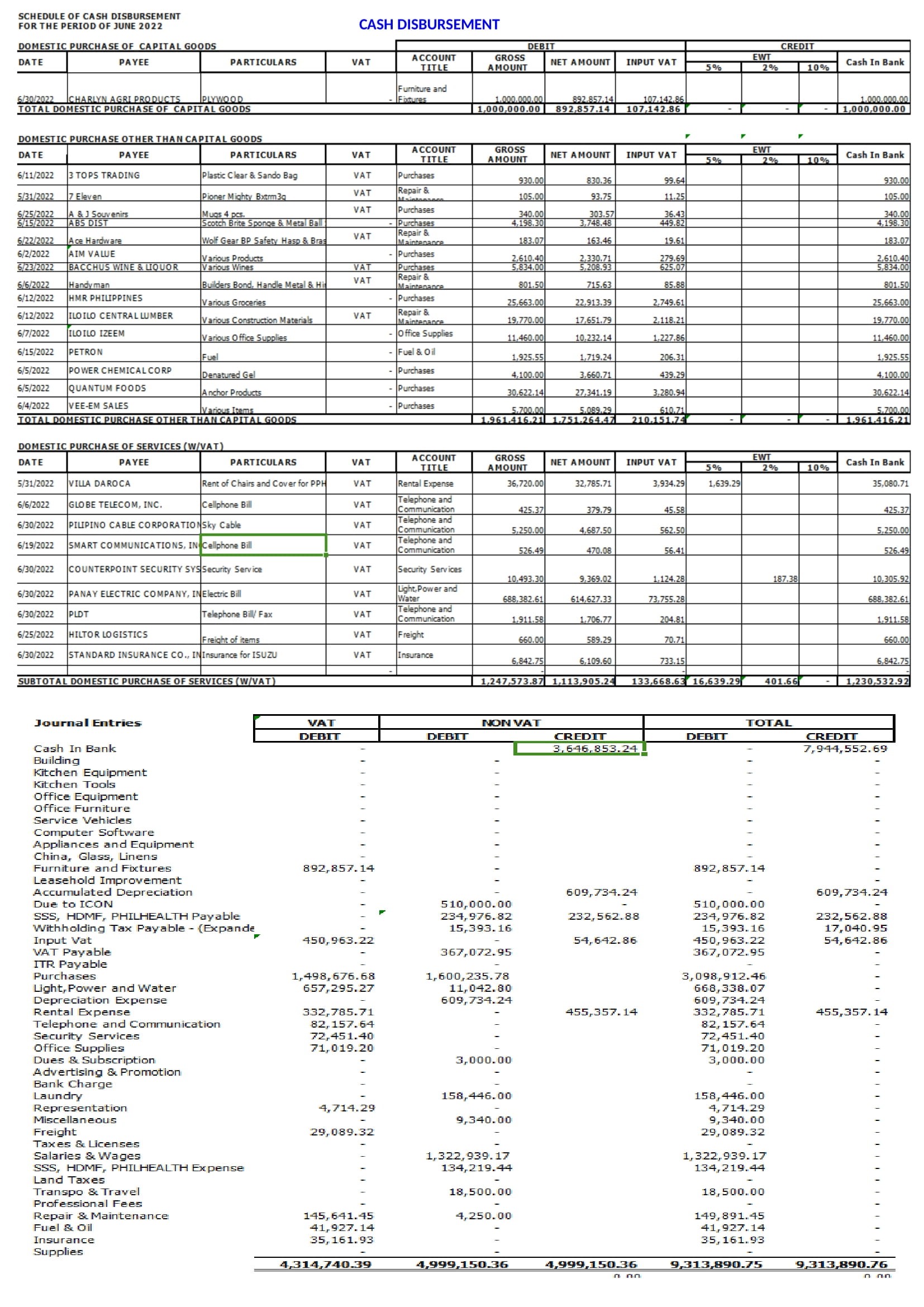 Sample Cash Disbursement