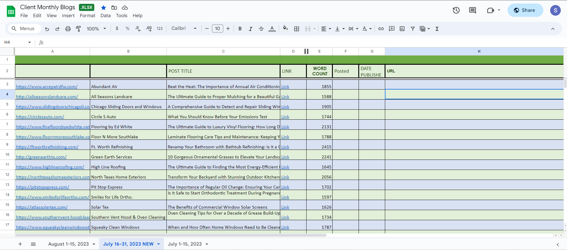 Client Monthly Blogs