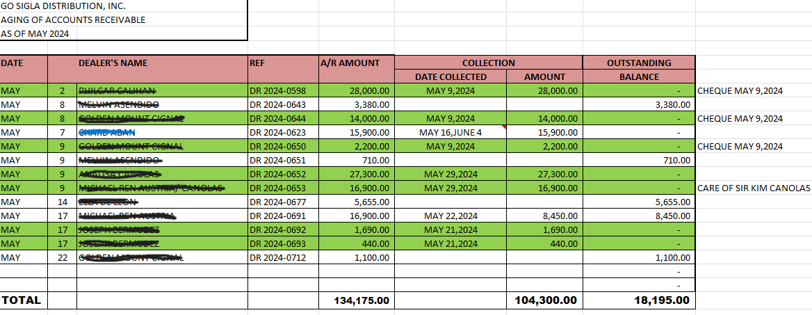 Basis for Balances of customers for follow up