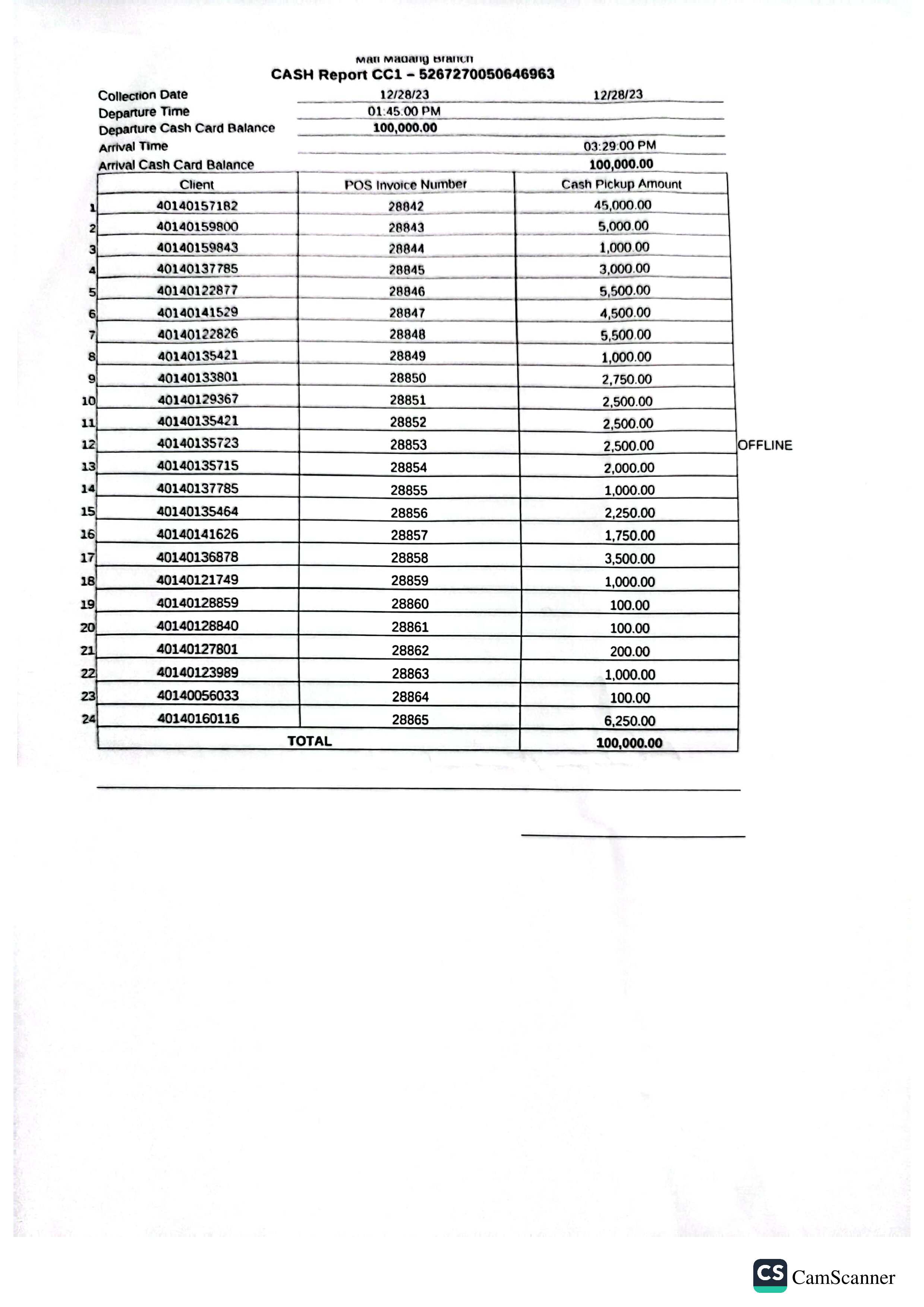 Cash Report