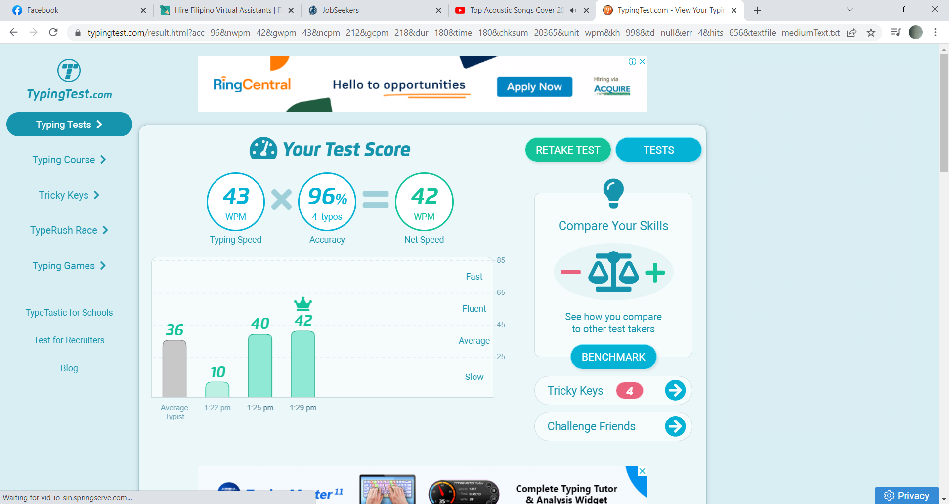 Here's my actual typing test which measured the number of words that I can typed correctly with specified time.