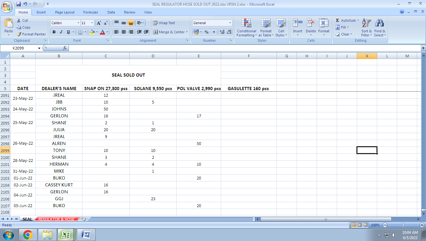 DAILY SEAL PURCHASES