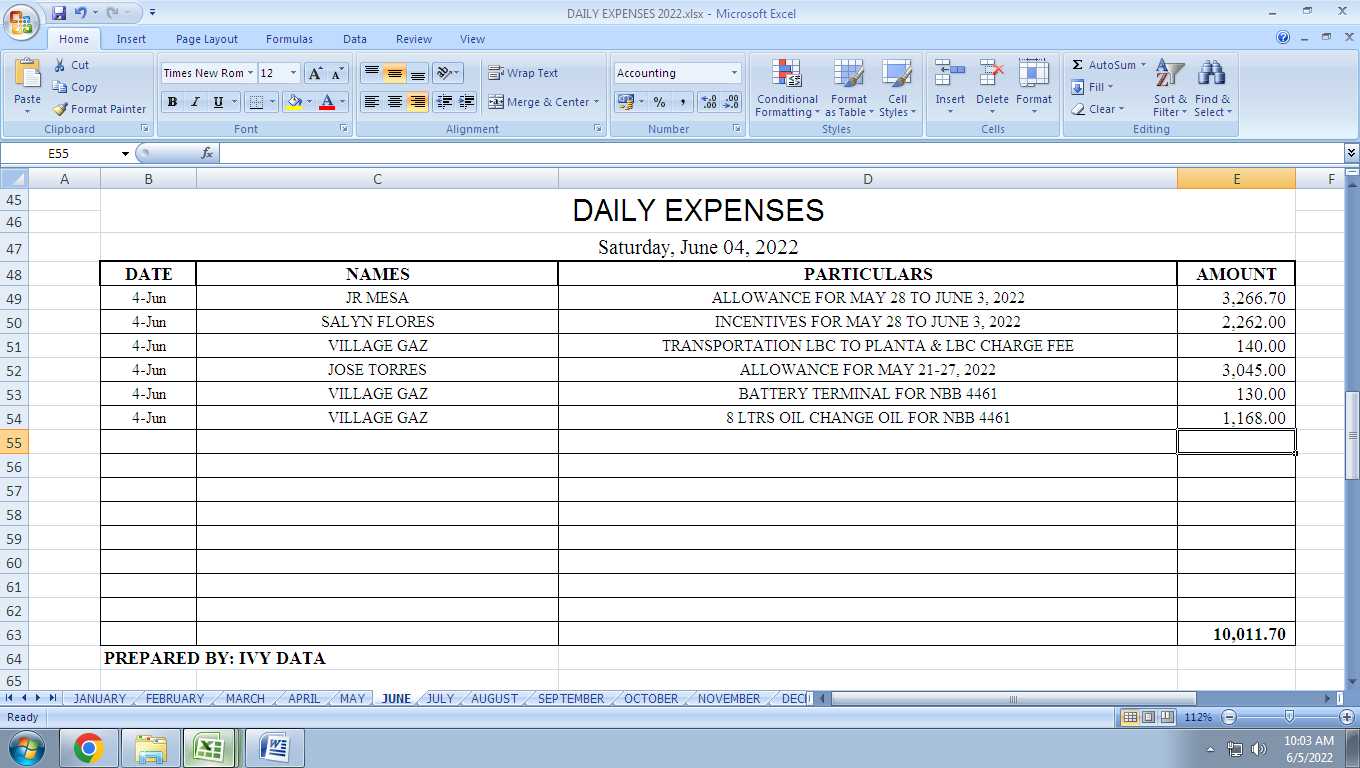 DAILY EXPENSES