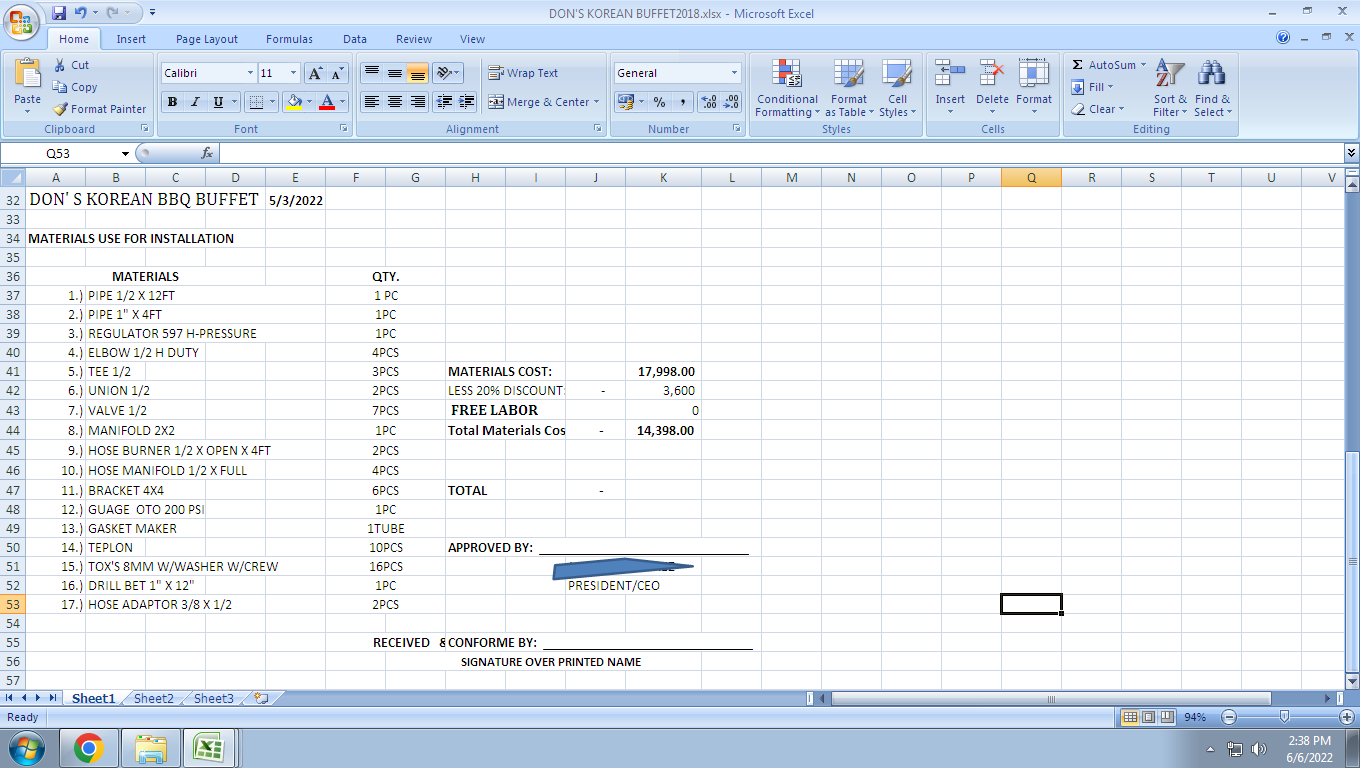 MAKING MATERIALS TO INSTALL TO THE CUSTOMER